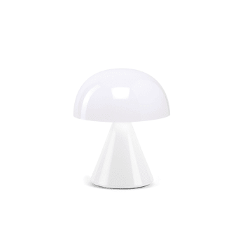 Mina offre deux réglages d’éclairage – chaud et froid – et un variateur d’intensité lumineuse, le tout contrôlé par un bouton situé en dessous de la lampe. Mina est rechargeable via USB-C et peut fournir jusqu’à 6h d’autonomie.