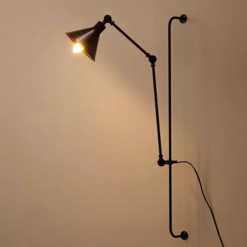 L’applique murale Elliot est une applique orientable en métal finition noire effet rouillé.