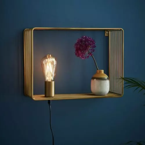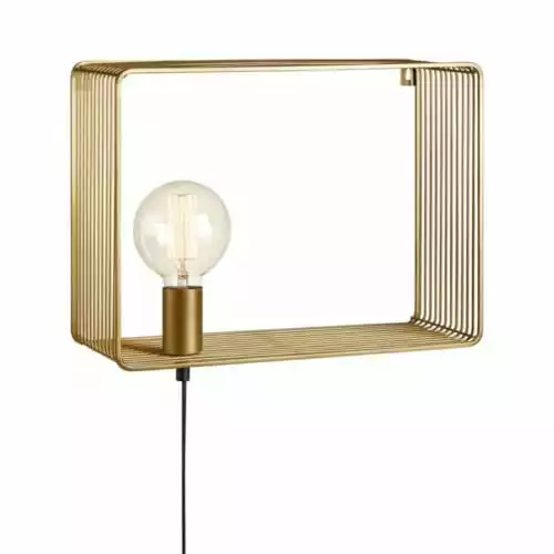 Cette applique est en fils de métal dorés et son design épuré lui permet de s’intégrer harmonieusement à tout style de décoration. Elle vous permet d’allier une source lumineuse et la mise en valeur de vos beaux objets. Vous pourrez installer l’applique Shelf dans votre chambre, votre salon, une montée d’escaliers, un bureau ou une entrée.